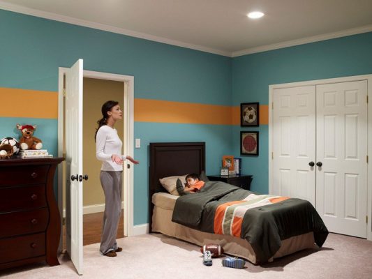 Đèn LED bulb cảm biến Rada tích hợp cảm biến chuyển động và cảm biến ánh sáng có phạm vi quét rộng và có khả năng cảm biến xuyên vật cản như tường và gỗ. Do lắp ở phạm vi hẹp, chính giữa cửa vào nhà vệ sinh và 2 phòng ngủ nên bố mẹ đi ngủ rồi mà đèn vẫn sáng do con ở phòng ngủ đối diện còn đang thức. Giải pháp tốt nhất là khách hàng lắp đèn cảm biến vào hẳn trong nhà vệ sinh hoặc sử dụng đèn ốp trần cảm biến loại góc cảm biến hẹp (WC) >>>.